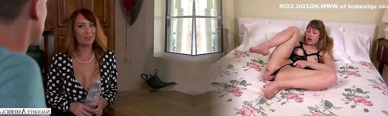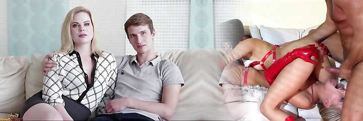 Aroused brunette in erotic lingerie, Mylena Johnson could not hold back from hotwife on her partner