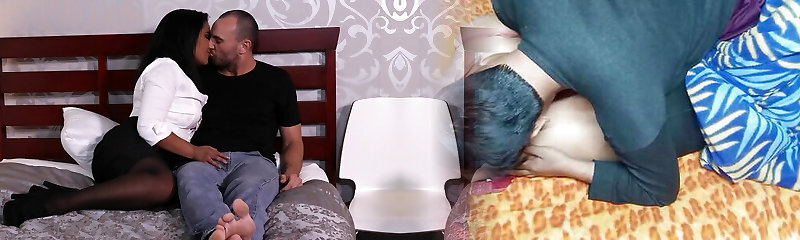 A hot mature woman has sex with her young lover in pantyhose
