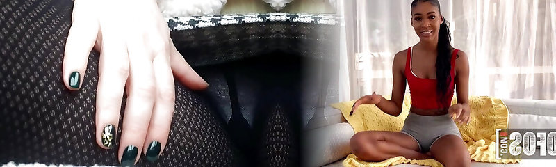 BBW in watch-through panties getting her hairy pussy fingered by her Sissy in tights