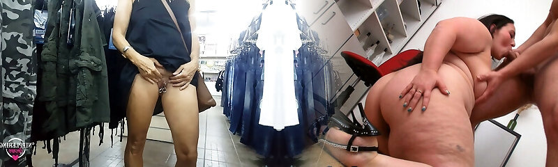 She Displays Her Giant Tits & Pussy In A Guitar Shop