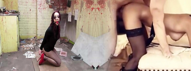 Edgy gal ejaculates rock hard in leather restrain blindfold surprise bi and pantyhose
