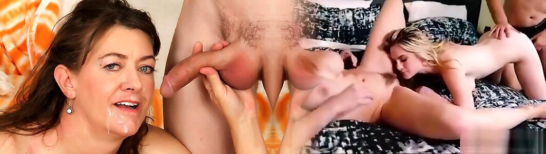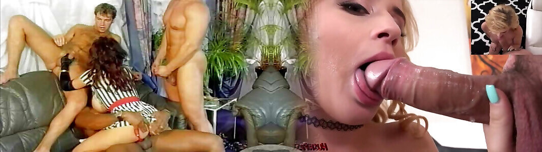 Beautiful MILF with Hairy Pussy Fucked and Cummed on Her Ass and Mouth by Two Monster Bisexual Cocks