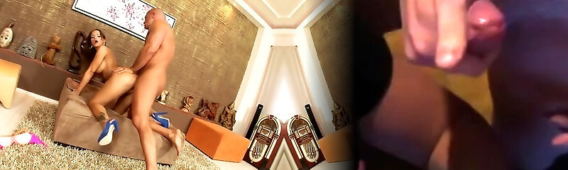 Brunette High Heels Cum Covered Big tits