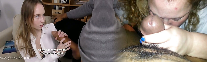 Fantastic blonde milf with fake big boobs and submissive teenage show their skills