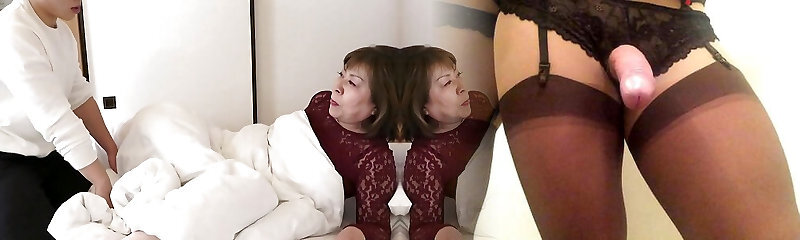 Chinese grandma and mom take young cocks in beds