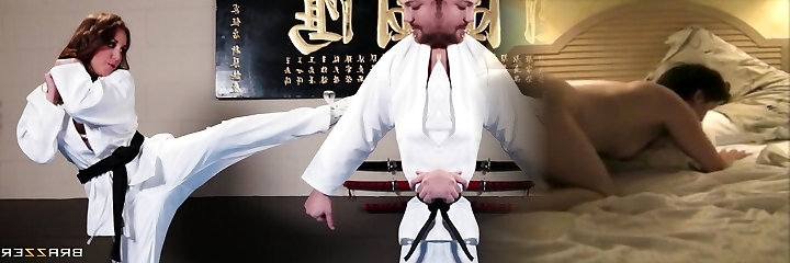 Not too bothered brunette Becky Bandini arches over letting man penetrate her