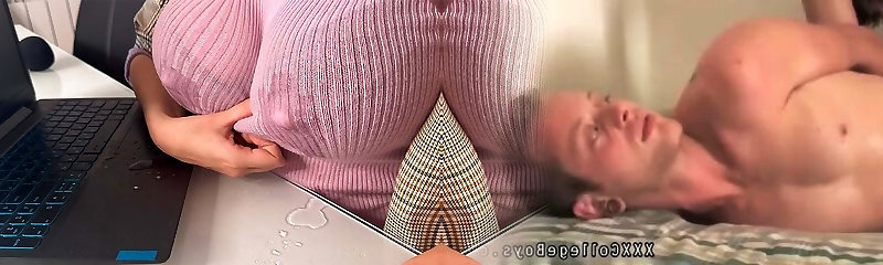 Torrid Step Mummy Tempts Step Son in the office, shows him milky nipples and Makes big cock Handjob