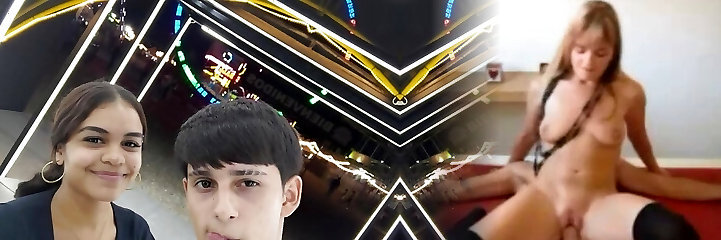Guy with the curly hair gives the Asian honey a salami she can bounce on