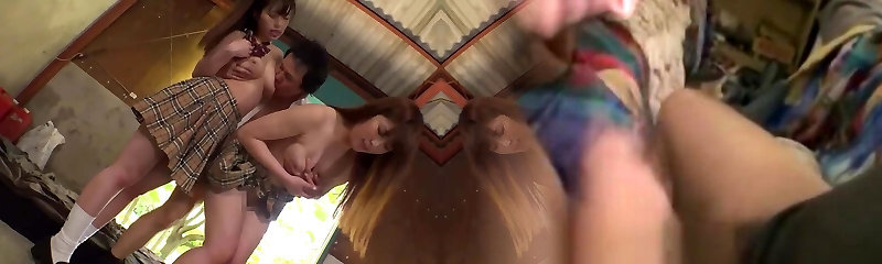 Latina babe got banged by two dicks in a sexy school uniform point of view