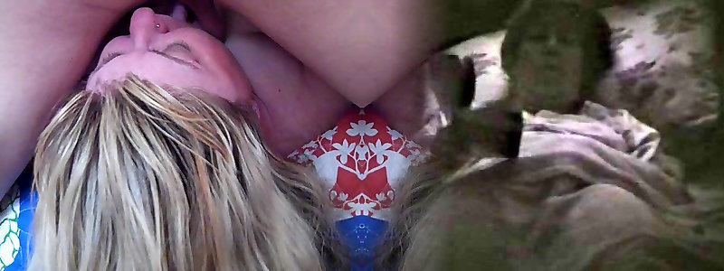 Buxomy towheaded whore inhales and penetrates delicious black lollipop in couch
