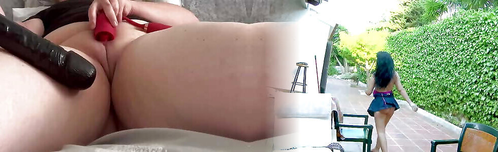 Ultra-kinky ebony Plus-size with thick bosoms fake penis in cunt no sound