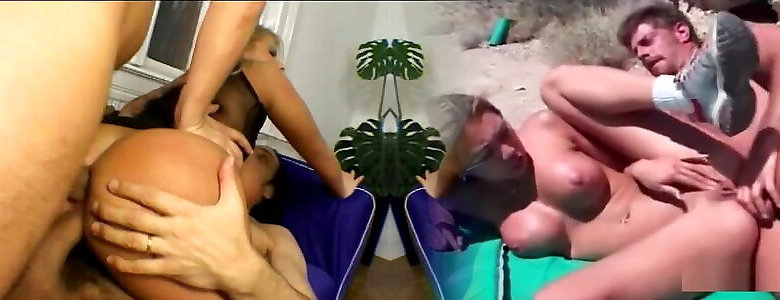 Blond and dark haired get their bums smashed during three way with boy