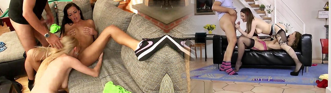 Big busty grannies sharing one guy for hot sex