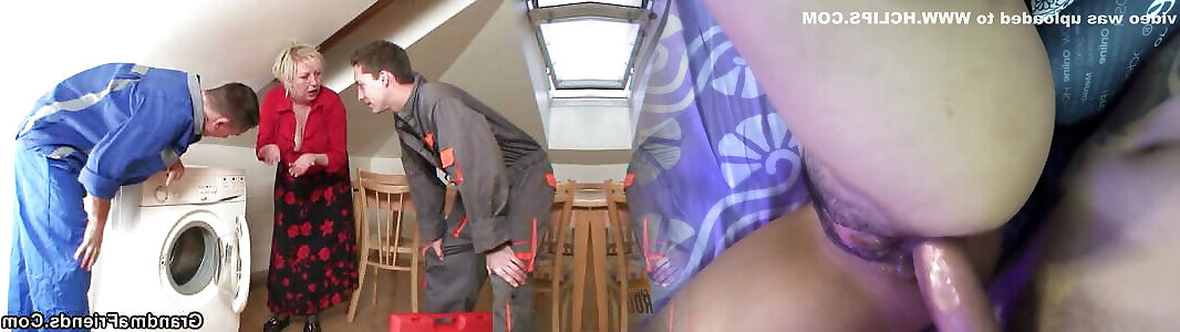 Handyman gets a wet thank you from a mature granny