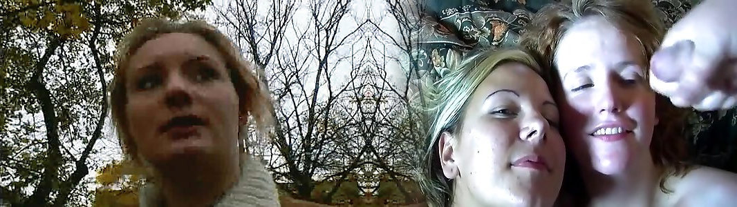 Two horny German sluts taking a thick cock in the backyard
