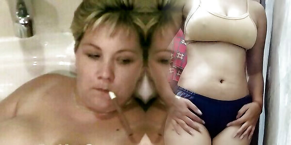 Big Tits and Hairy Pussy at Bath time for mature BBW MILF wife