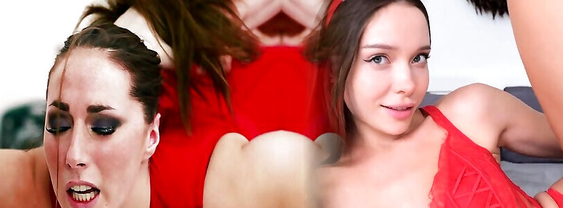 Hot Boss threesome familiy sex in Red Silk Dress and Panties POV Cowgirl Sex and Cum Dripping Pussy - Business-bitch