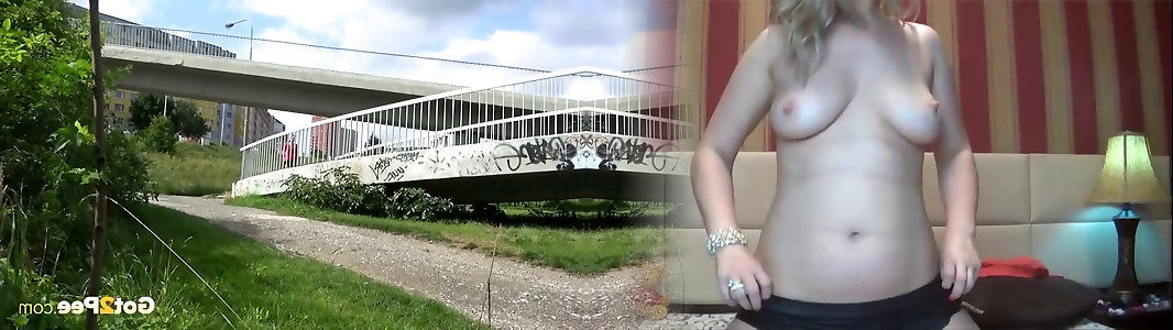 Long-legged raven haired wench urinated a plenty of on monstrous road bridge