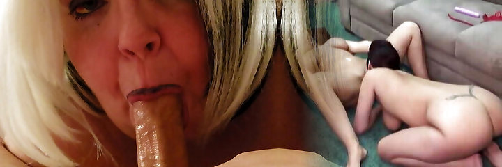 Fat pussy mature blonde chick sucks a hot cock and gets screwed on the sofa
