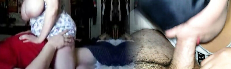Chubby dominas cocksucking in three-way