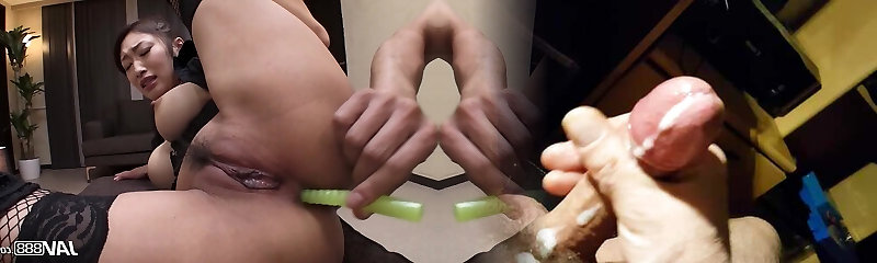 Giant Dildo Inserted in Black Tight Asian Pussy
