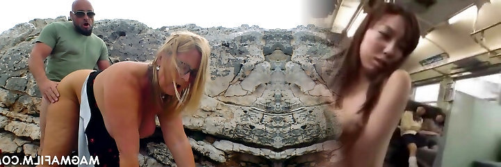 Picked up blonde Cougar with big knockers is fucked outdoors by stud outdoors