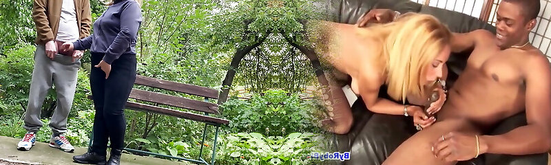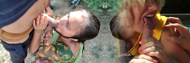 Elder woman suck big dick outdoor and get facial