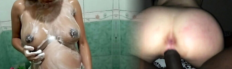 Big titties knocked up girl take bath with her man he play with pussy
