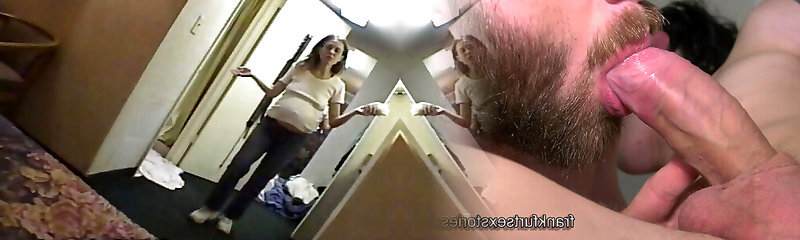 Horny and pregnant wife, throated his dick before a ride