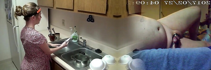 Jacking cock over distracted pregnant lady.