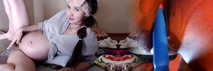 Pregnant at 8 months ends up with a huge dildo