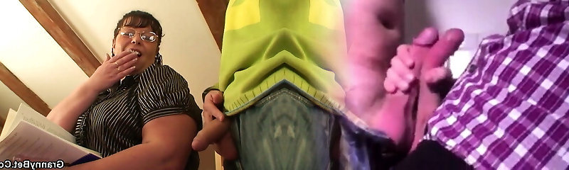 Plump granny dusts off the pussy and gets screwed by a younger guy