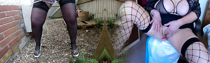 French Maid in tights and Heels outdoors