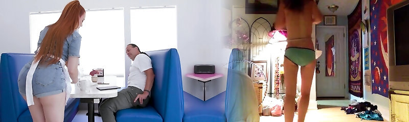 Redhead lady Madison Morgan fucks a customer on the table