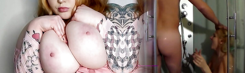 Chunky ginger-haired young hottie shows off her big bra-stuffers and orange butt