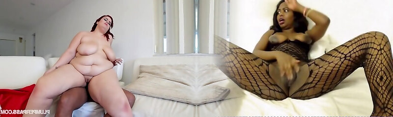 Steamy plumpy tramp with a fat booty tries to handle extremely big black dick in her mouth and pussy