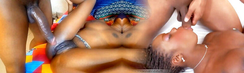 Perky Coffee Brown Fucks Two Phat Cocks Doggy Style