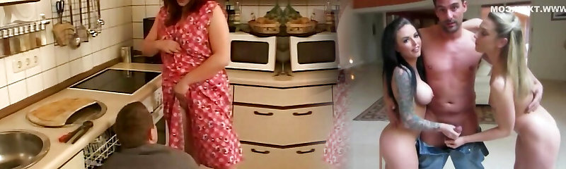 I'm a horny buxom BBW wife and I love while my spouse fucks my shaved pussy in the kitchen