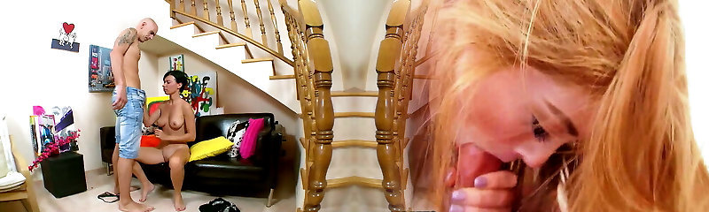 Husband watches his student get sucked by his big tits wifey