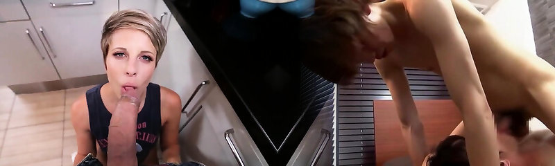 After being caught smoking the blonde milf has her micro-skirt raised and her shaved snatch pounded for discipline