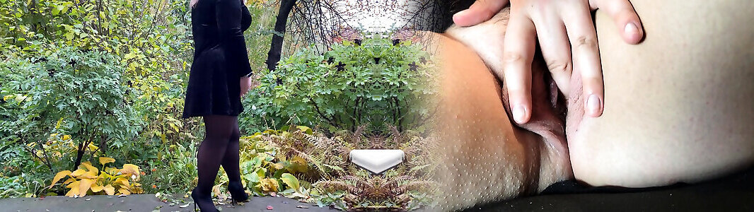 Mother-in-law pees outdoors with knees wide apart