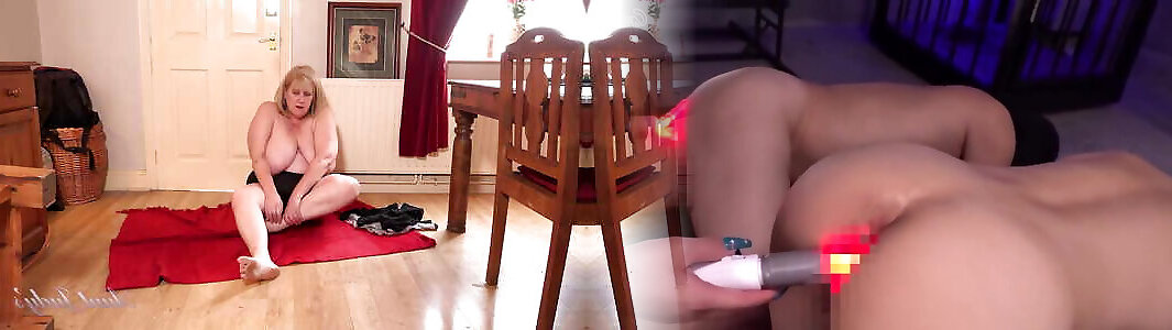 English BBW milf Samantha Sanders lets you watch her huge boobs and blond haired fanny as she plays with a sex toy