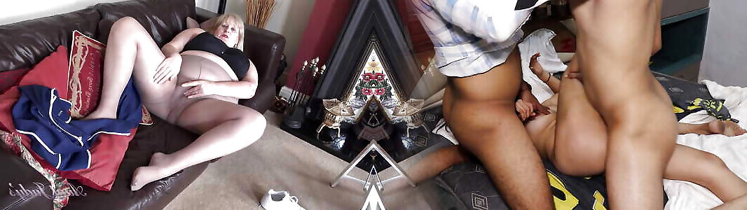 Bbw milf Nicolette Parsons paws her nylon covered pleasure button