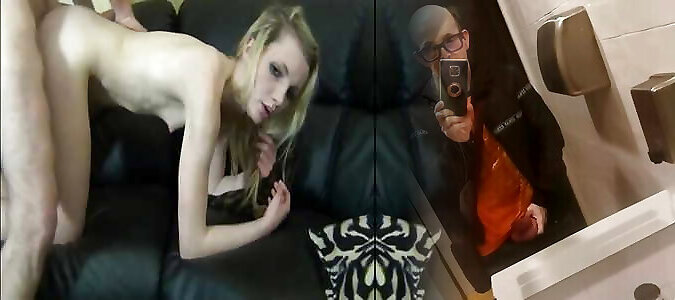 I find the door open and film Larisa, as blonde as she is slutty, while she lets her boyfriend masturbate her