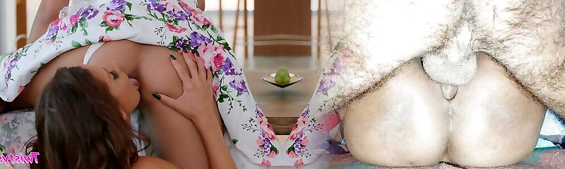 Yam-sized Fat MILF Pulls Up a Silk Gown Of Her Plump-ass GF And Smashes Her With Strup-on In the Kitchen