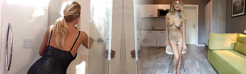 Busty blonde Babe in underwear and fishnet stockings