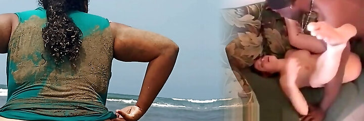 Fat woman blows her man at beach