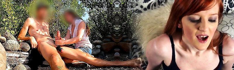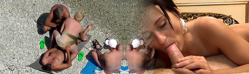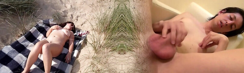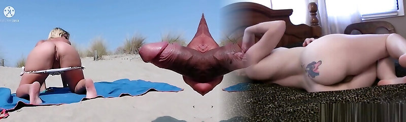 Wanking off a stranger's big rod on a public beach