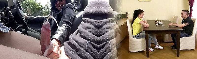 Brown-haired with pierced nip and hanging tits takes cum on mouth