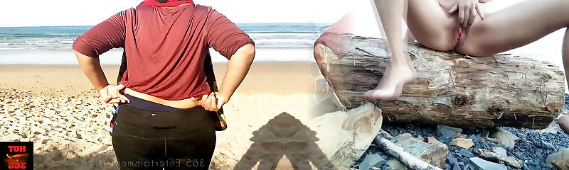 Japanese Babe Putri Cinta Playing with Her Puss On Empty Beach